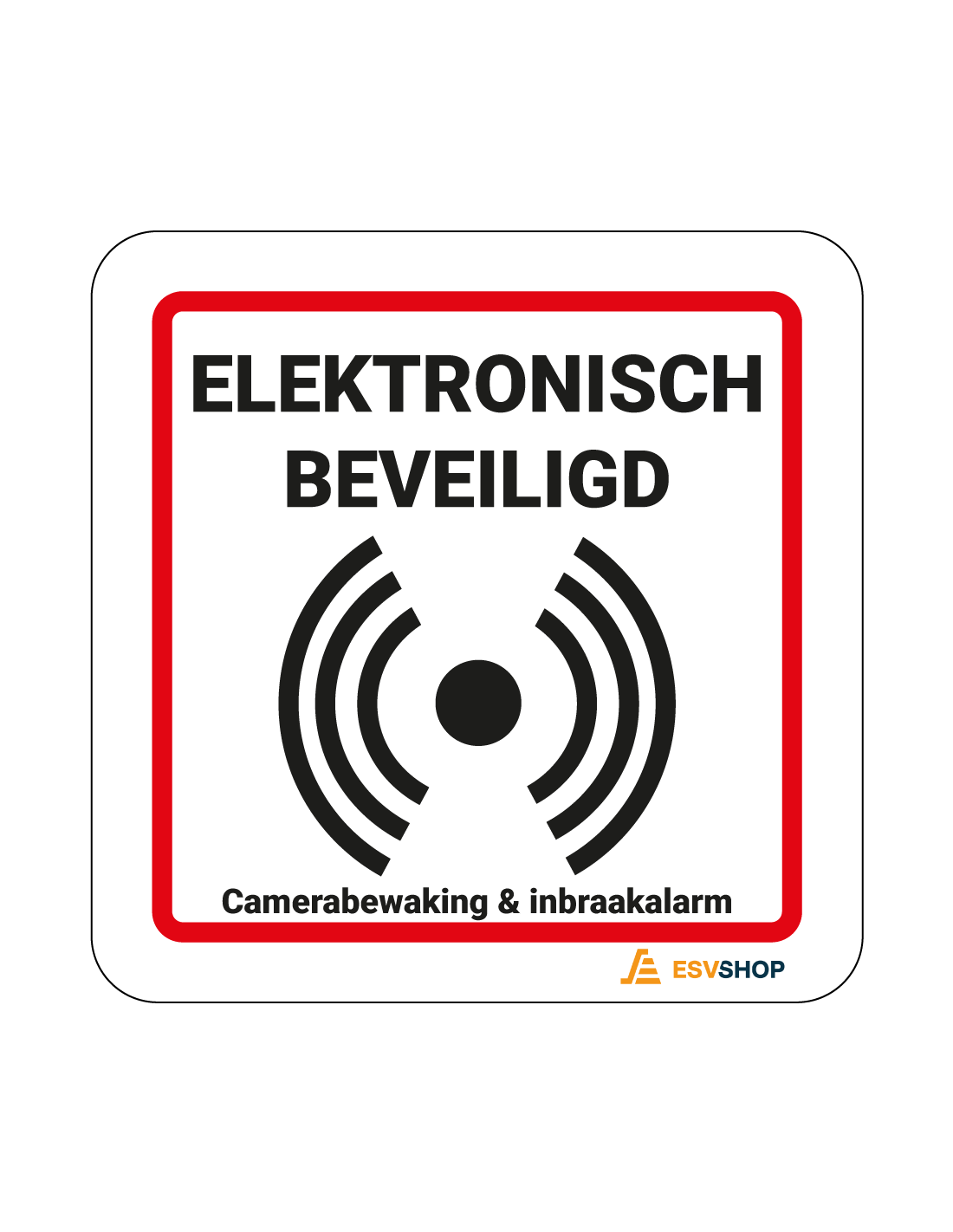 De Raamsticker elektronisch beveiligd is een vierkante raamsticker met het symbool van een alarm om aan te geven dat dit gebouw elektronisch beveiligd is. De sticker is voorzien van het alarm symbool in het zwart op een witte achtergrond. De sticker is verkrijgbaar in twee verschillende afmetingen en plak je aan de binnenzijde van het raam.