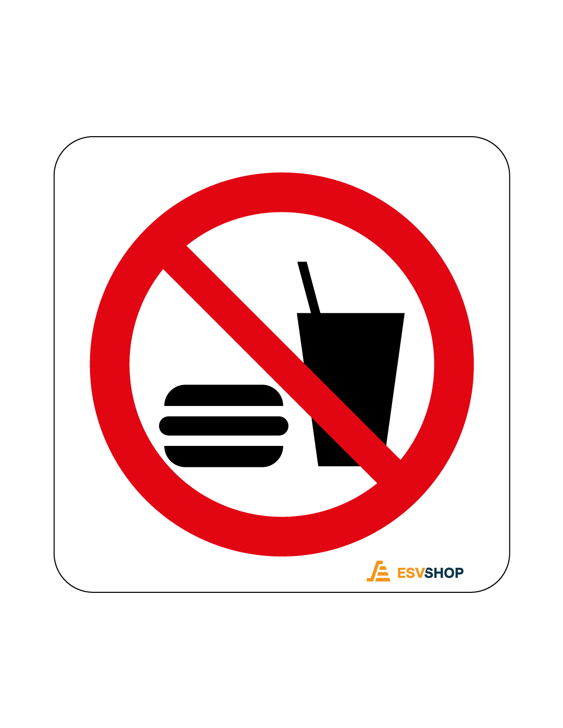 - Vierkante sticker met symbool eten en drinken verboden