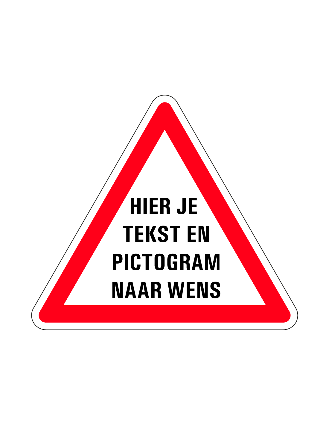 Je Verbodssticker tekst en pictogram naar wens, driehoek kun je zelf naar wens samenstellen door de sticker online te personaliseren in onze live editor. Hiermee kun je aangeven dat er een bepaald verbod of een waarschuwing geldt.