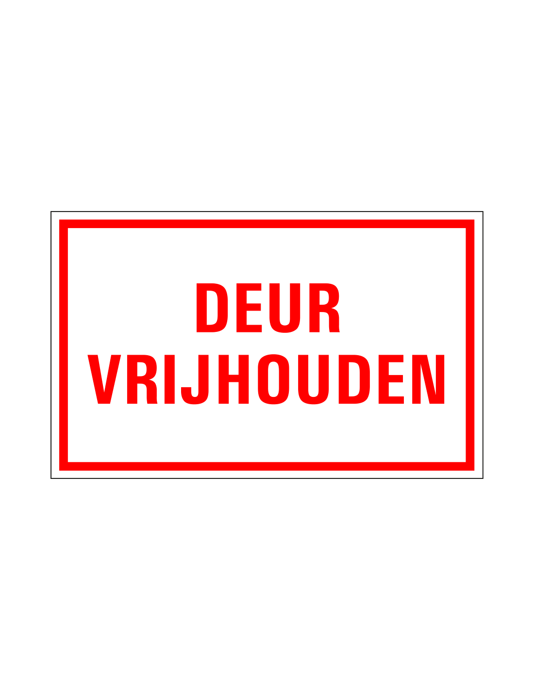 De Deur vrijhouden sticker is een rechthoekige sticker met tekst om aan te geven dat je deze deur vrij moet houden. De sticker is voorzien van de Nederlandse tekst "Deur vrijhouden" in rode letters op een witte achtergrond. De sticker is verkrijgbaar in verschillende afmetingen en is geschikt voor binnen- en beperkt buitengebruik.