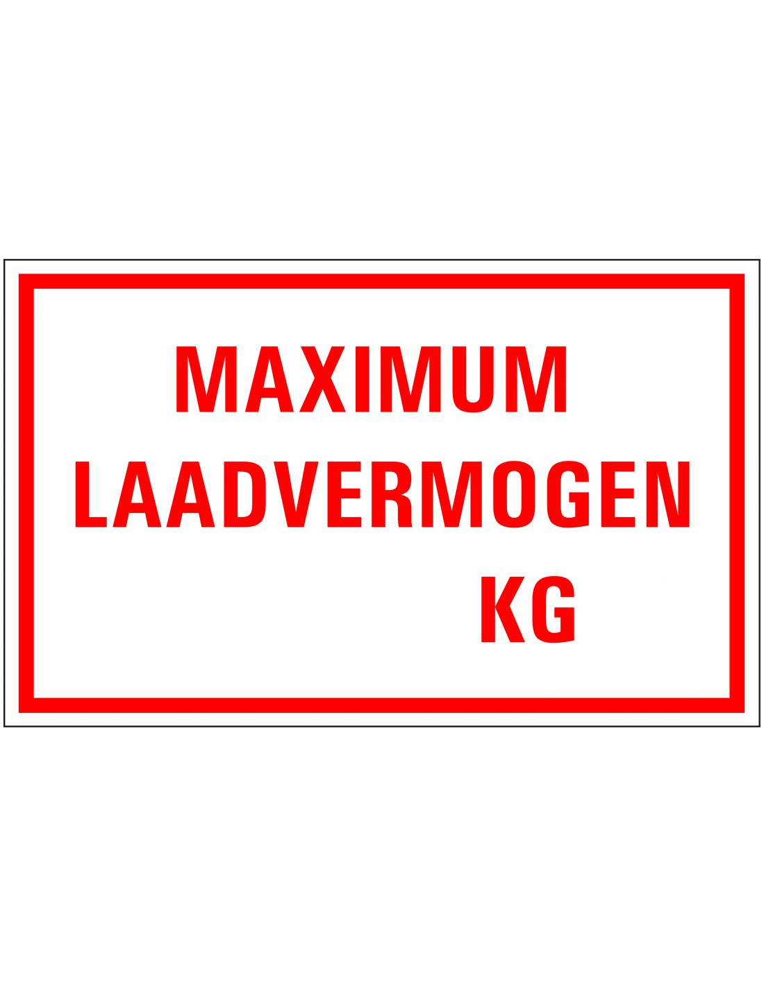 Deze sticker met tekst maximum laadvermogen kg tekst sticker geeft aan dat er een limiet zit aan het laadvermogen van een bepaalde machine of apparaat. De limiet is zelf in te vullen met onze online live editor.