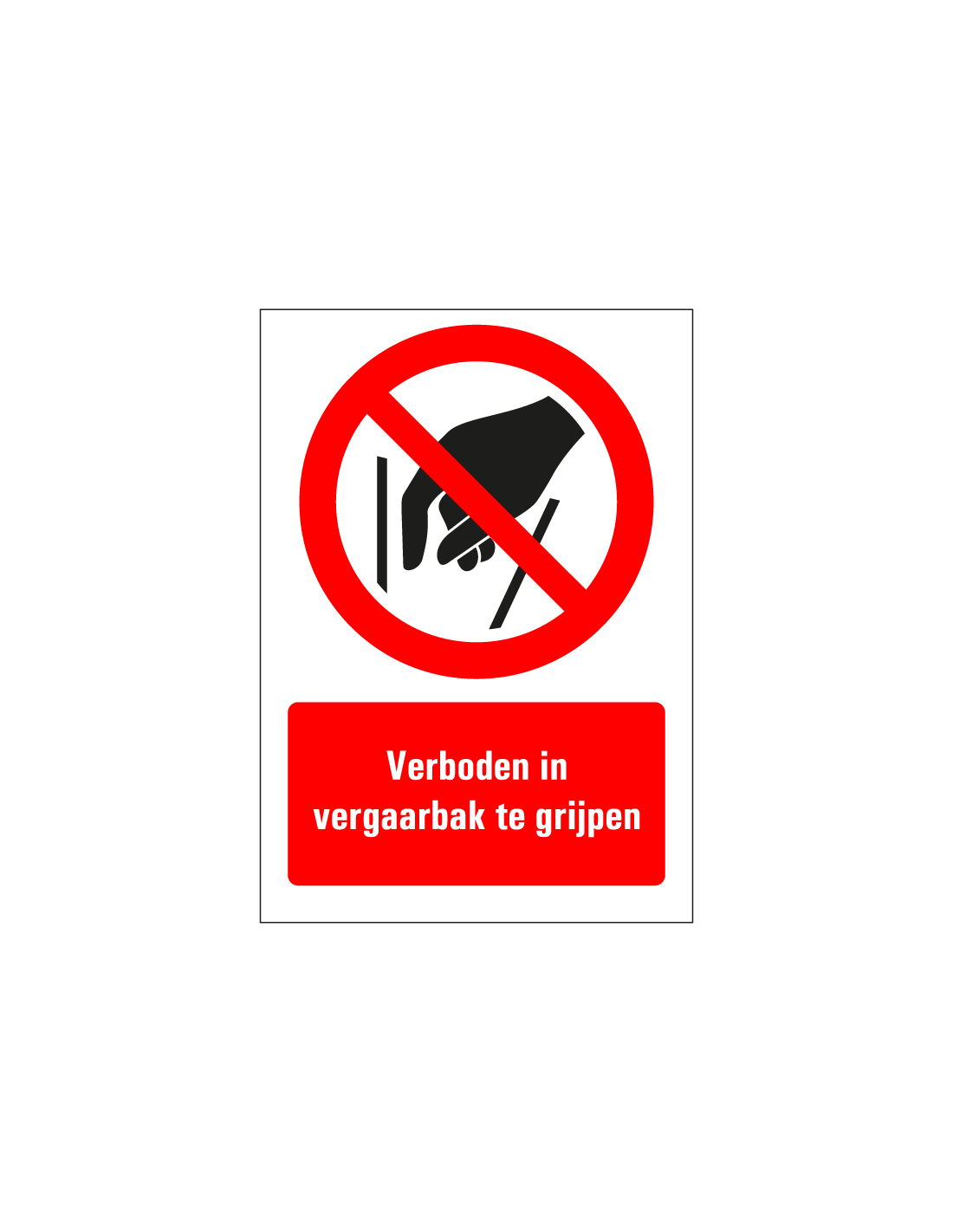 De tekststicker verboden in vergaarbak te grijpen geeft aan dat bepaalde dingen niet aangeraakt mogen worden. De Nederlandse tekst maakt nog duidelijker wat het pictogram inhoudt. Dit voorkomt misverstanden, doordat mensen soms niet weten wat een bepaalde pictogram inhoud. De sticker is verkrijgbaar in meerdere maten en heeft een zelfklevende folie op de achterkant.