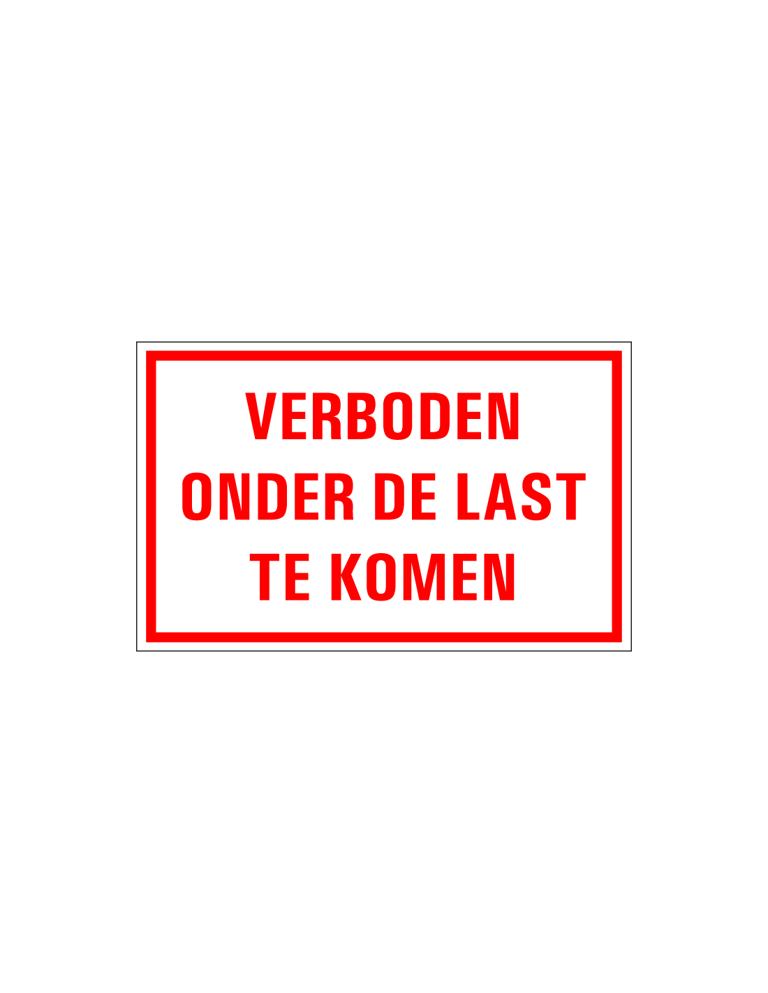 Deze sticker met tekst verboden onder de last te komen geeft aan dat het verboden is om onder de last te komen van bijvoorbeeld een kraan.