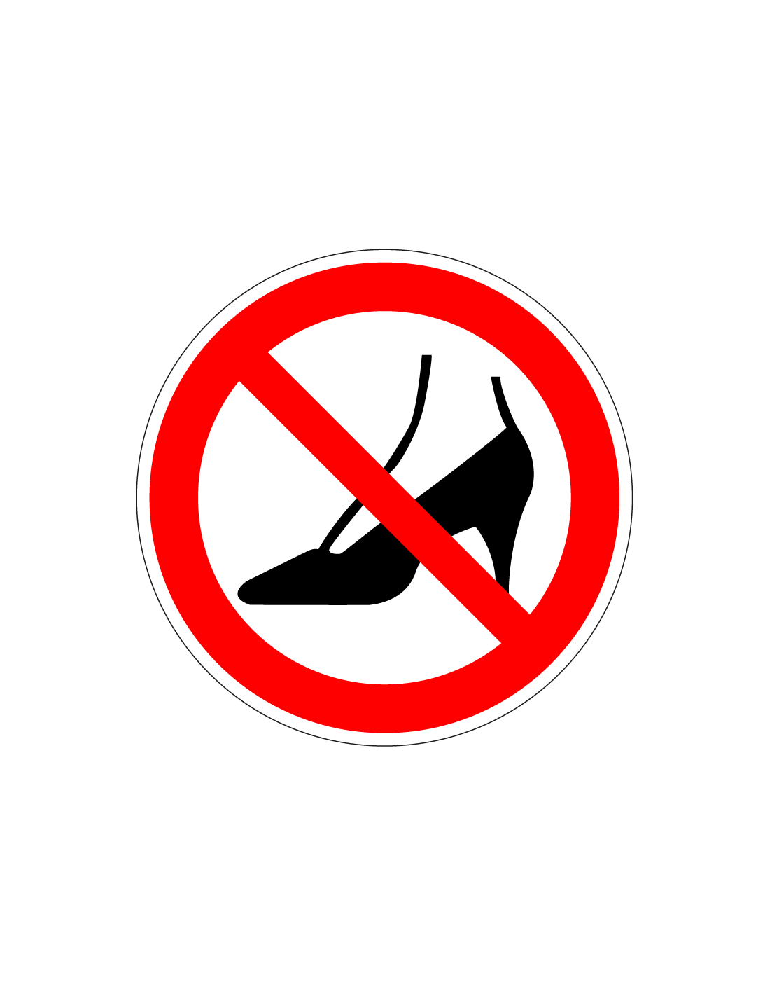 - Ronde sticker met pictogram naaldhakken verboden