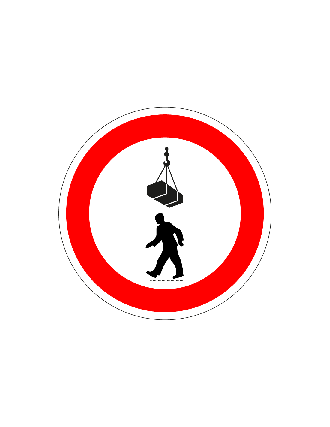 - Ronde sticker met pictogram verboden onder hangende last te gaan staan