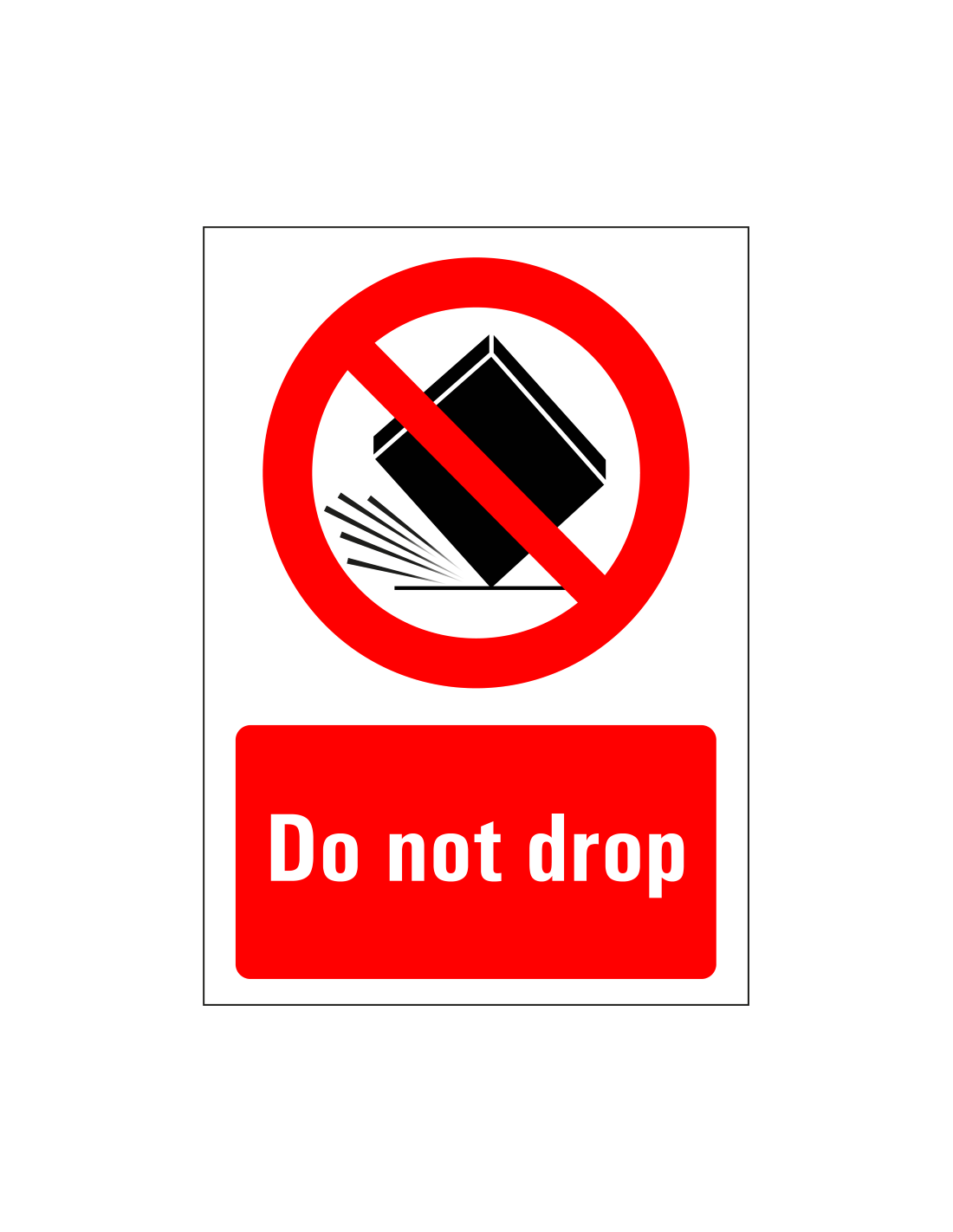 Deze do not drop sticker laat zien dat er op deze plek een verbod is om iets te laten vallen. Met behulp van de Engelste tekst do not drop op deze sticker geef je dit op een duidelijke manier aan.