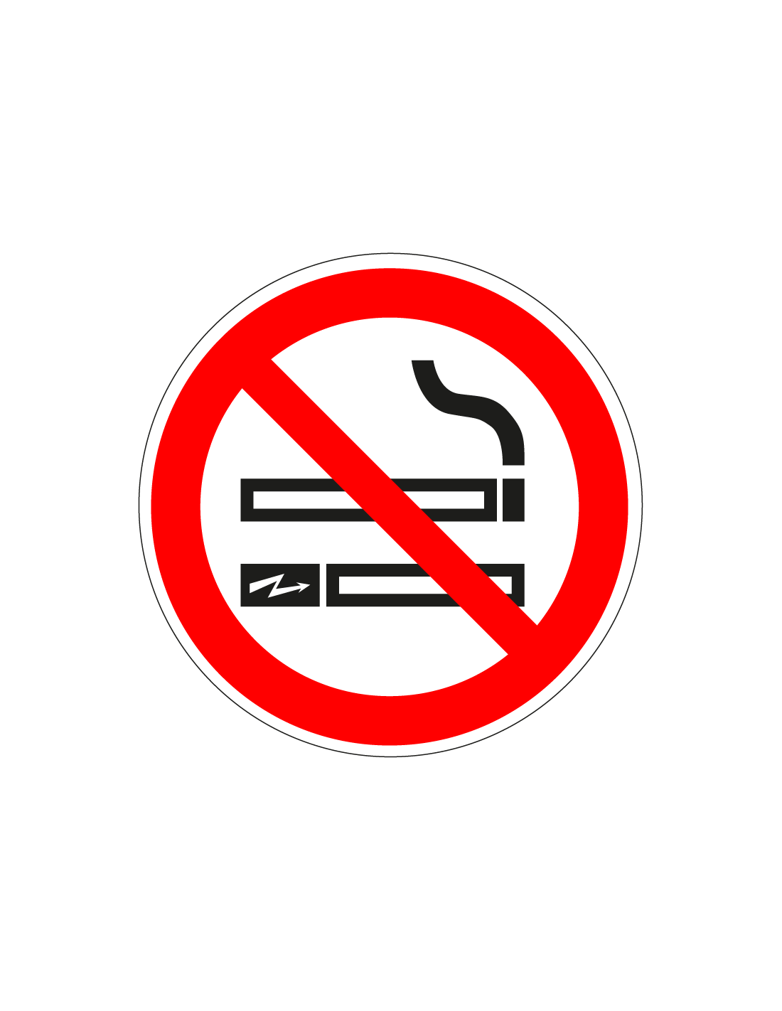 - Ronde sticker met pictogram roken en e-sigaret verboden