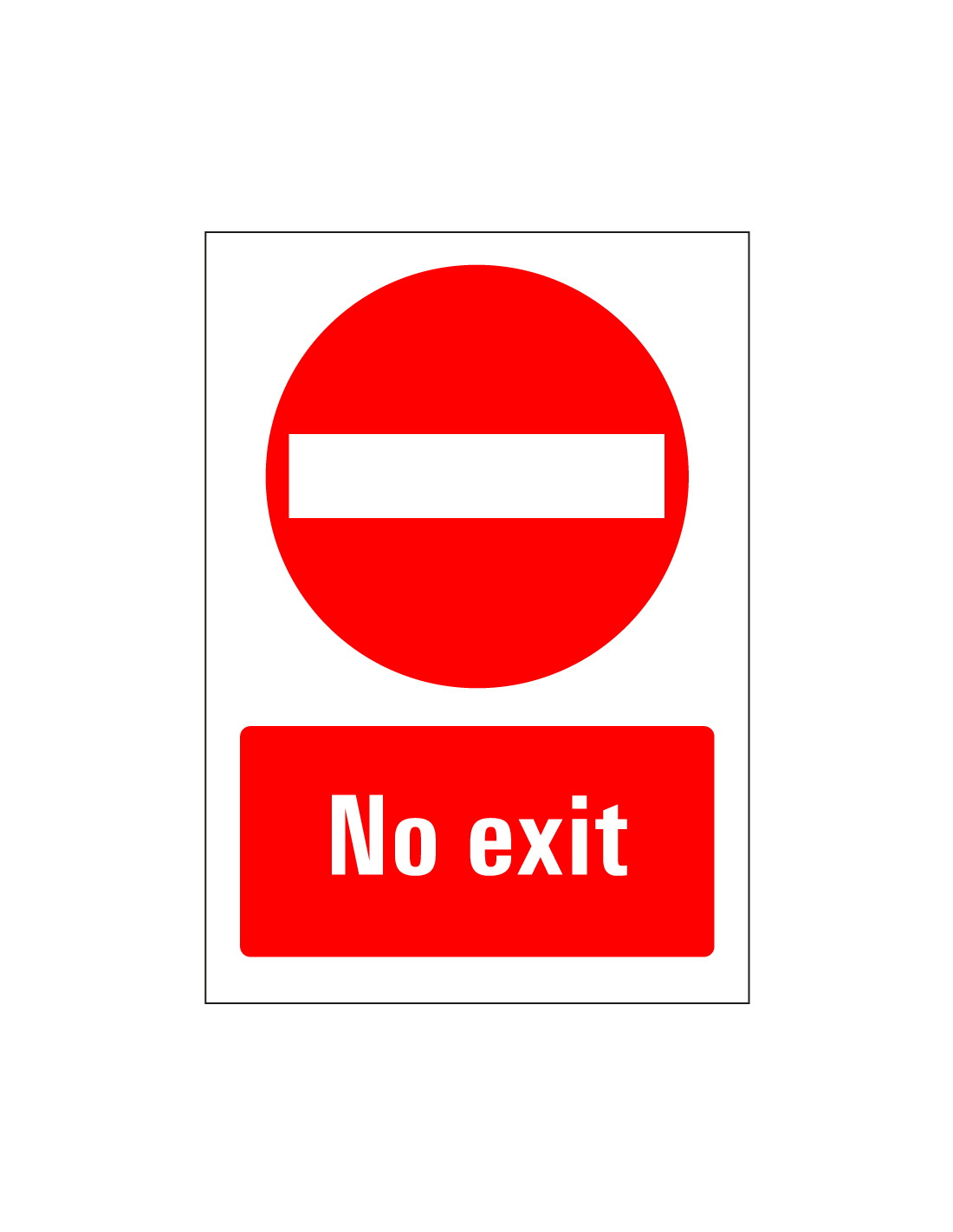 De no exit sticker is een rechthoekige sticker met een verbodssymbool om aan te geven dat hier geen uitgang is. Het is voorzien van de Engelse tekst "No exit" in witte letters op een rode achtergrond. De sticker is verkrijgbaar in verschillende afmetingen en is geschikt voor binnen- en beperkt buitengebruik.