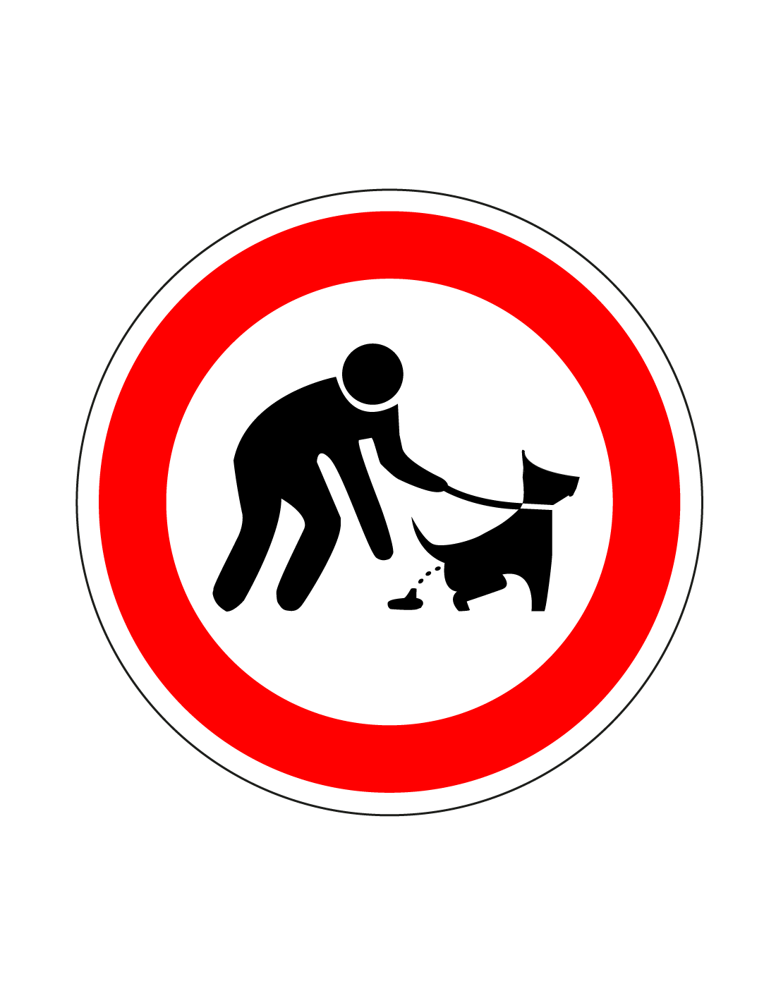 Deze sticker laat door middel van het poepende hond en opruimend persoon zien dat er het zeer gewaardeerd word wanneer de hondenpoep netjes opgeruimd wordt door de baasjes. Op deze manier blijft de stoep schoon en ervaar je geen overlast van hondenpoep op en rondom het terrein.