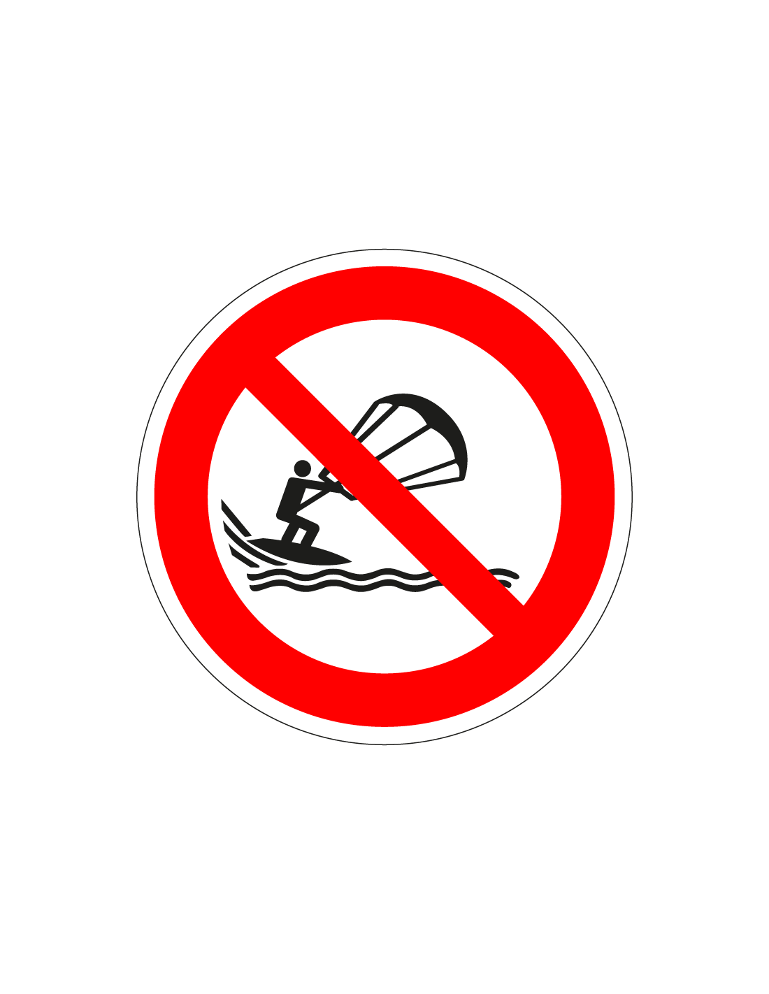 Wanneer u wilt aangeven dat er een verbod voor kitesurfen geldt op een bepaalde plek, is onze verboden voor te kitesurfen sticker hier ideaal voor. Dit verbodspictogram is gemaakt van zelfklevende folie en voldoet aan de laatste veiligheidseisen. Dit zijn ASR A1.3 P065, DIN EN ISO 7010 P065.