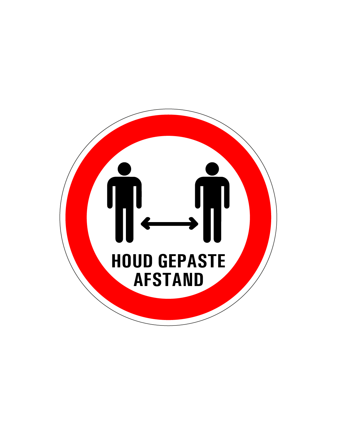 Deze sticker laat door middel van het gepaste afstand symbool zien dat er een verbod geldt om hier dicht bij elkaar te staan. Dit pictogram kunt u bijvoorbeeld gebruiken om mensen te attenderen op de corona maatregelen en de daarbij behorende regels. Zo voorkomt u dat mensen de corona regels overtreden.