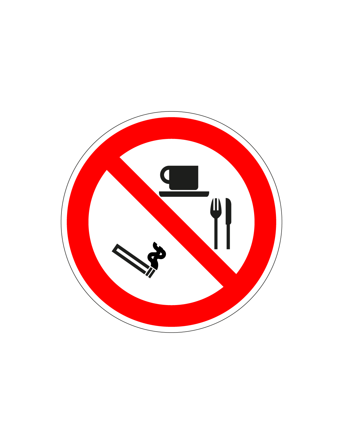 - Ronde sticker met pictogram verboden te roken, eten en drinken