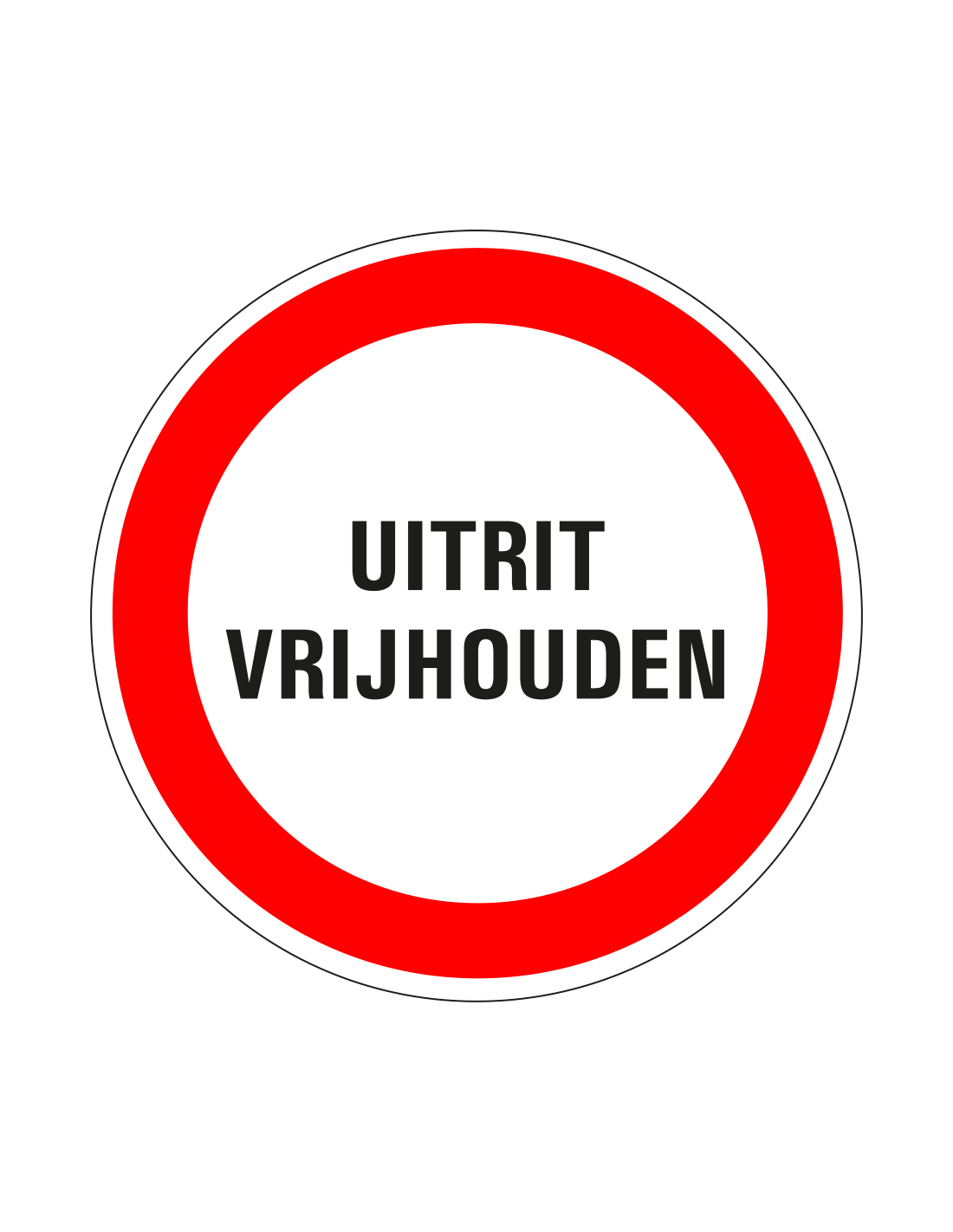 De Uitrit vrijhouden sticker is een ronde sticker met een tekst om aan te geven dat er hier sprake is van een uitrit die je vrij dient te houden. De sticker is voorzien van de Nederlandse tekst "Uitrit vrijhouden" in zwarte letters op een witte achtergrond. De sticker is verkrijgbaar in verschillende afmetingen en is geschikt voor binnen- en buitengebruik.