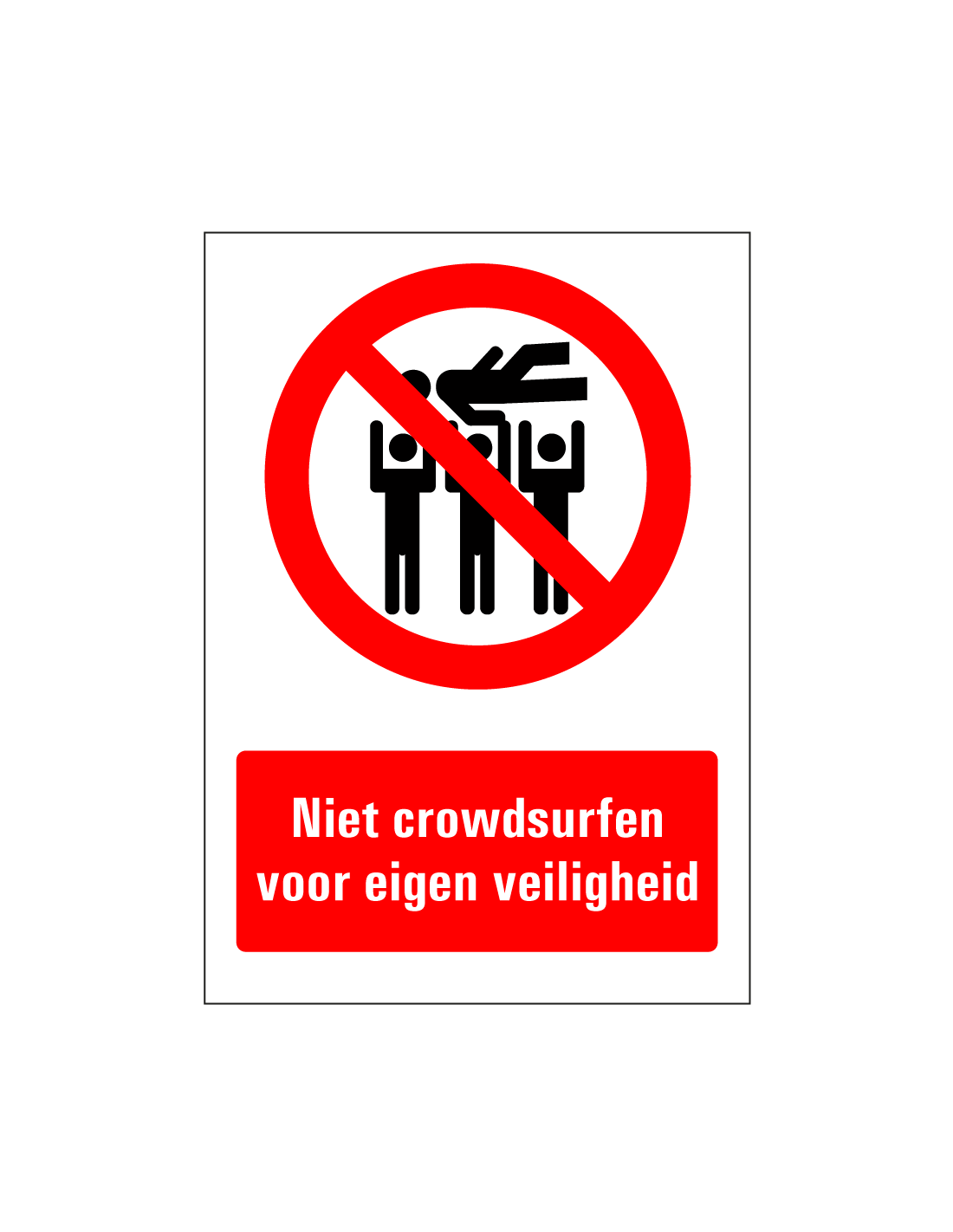 - Rechthoekige sticker met tekst niet crowdsurfen voor eigen veiligheid