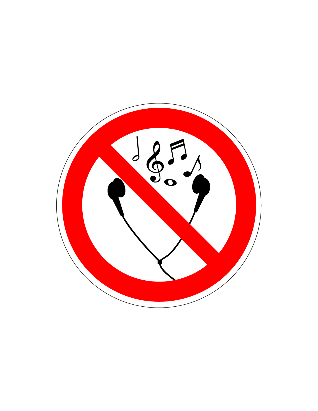 Deze sticker laat door middel van een rode cirkel met het symbool oortjes zien dat er sprake is van een verbod op oortjes op deze plek. Dit kunt u bijvoorbeeld gebruiken wanneer mensen op moeten letten.