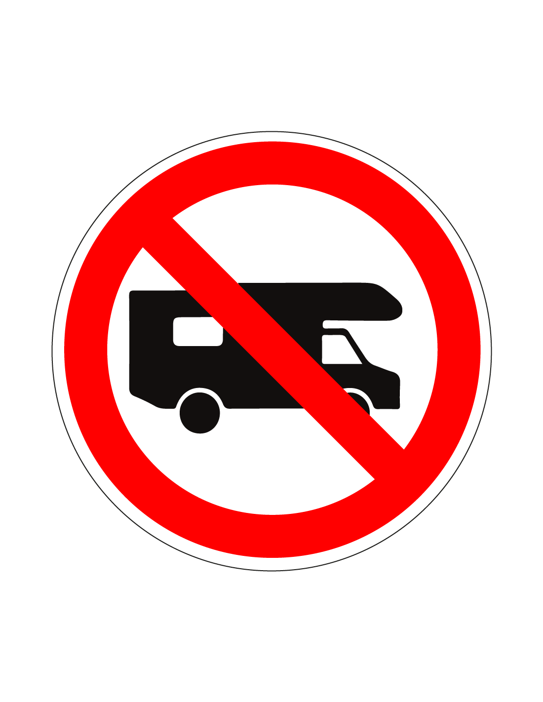 - Ronde sticker met pictogram camper verboden