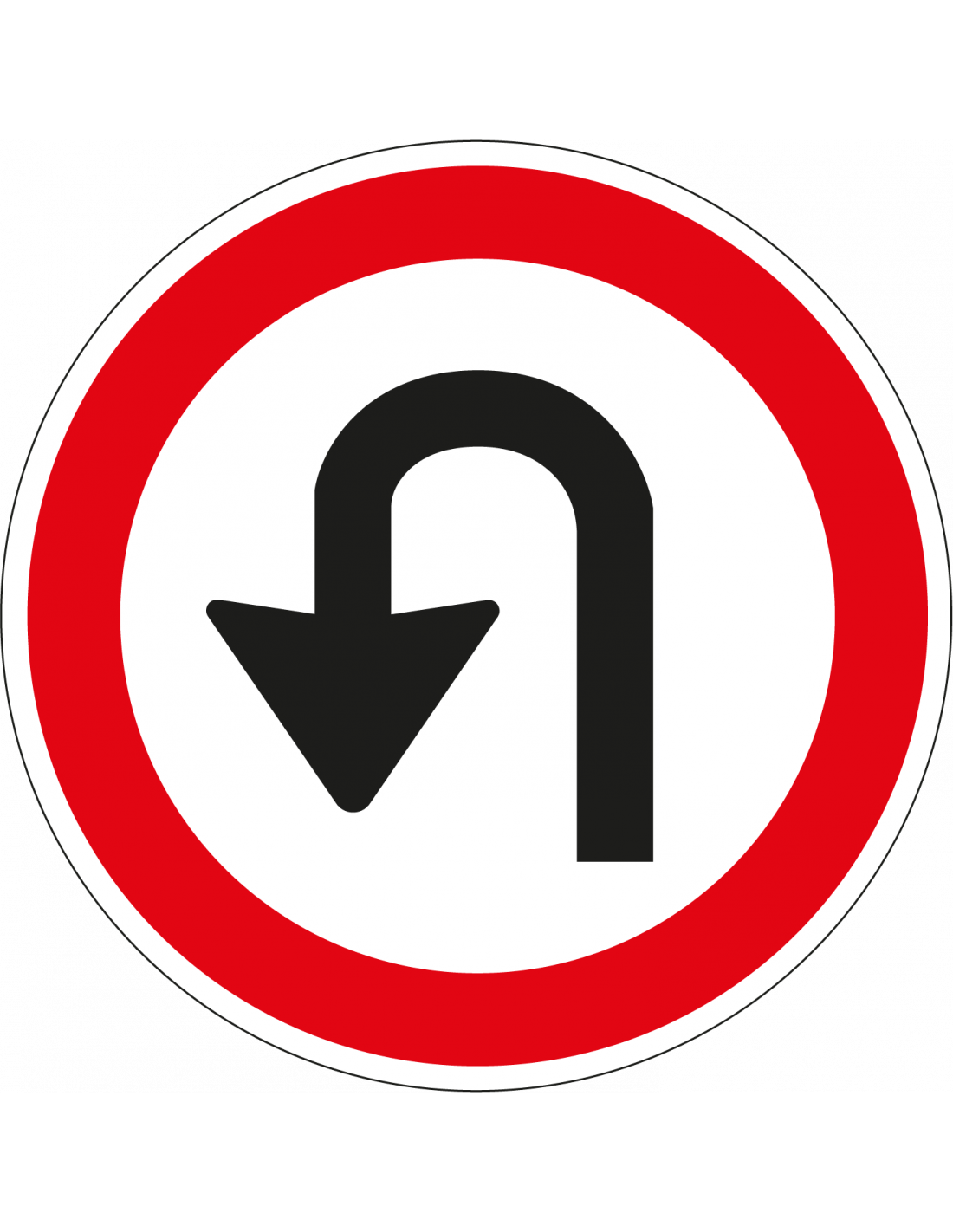 Deze keerverbod sticker geeft aan dat het op deze locatie verboden is voor motorvoertuigen om te keren.