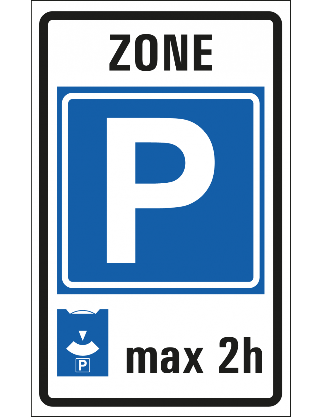Deze parkeerzone sticker laat zien dat er hier sprake is van een parkeerschijfzone. Dit betekent dat de parkeerschijf dient te worden gebruikt en dat er maximaal 2 uur geparkeerd mag worden in deze zone.
