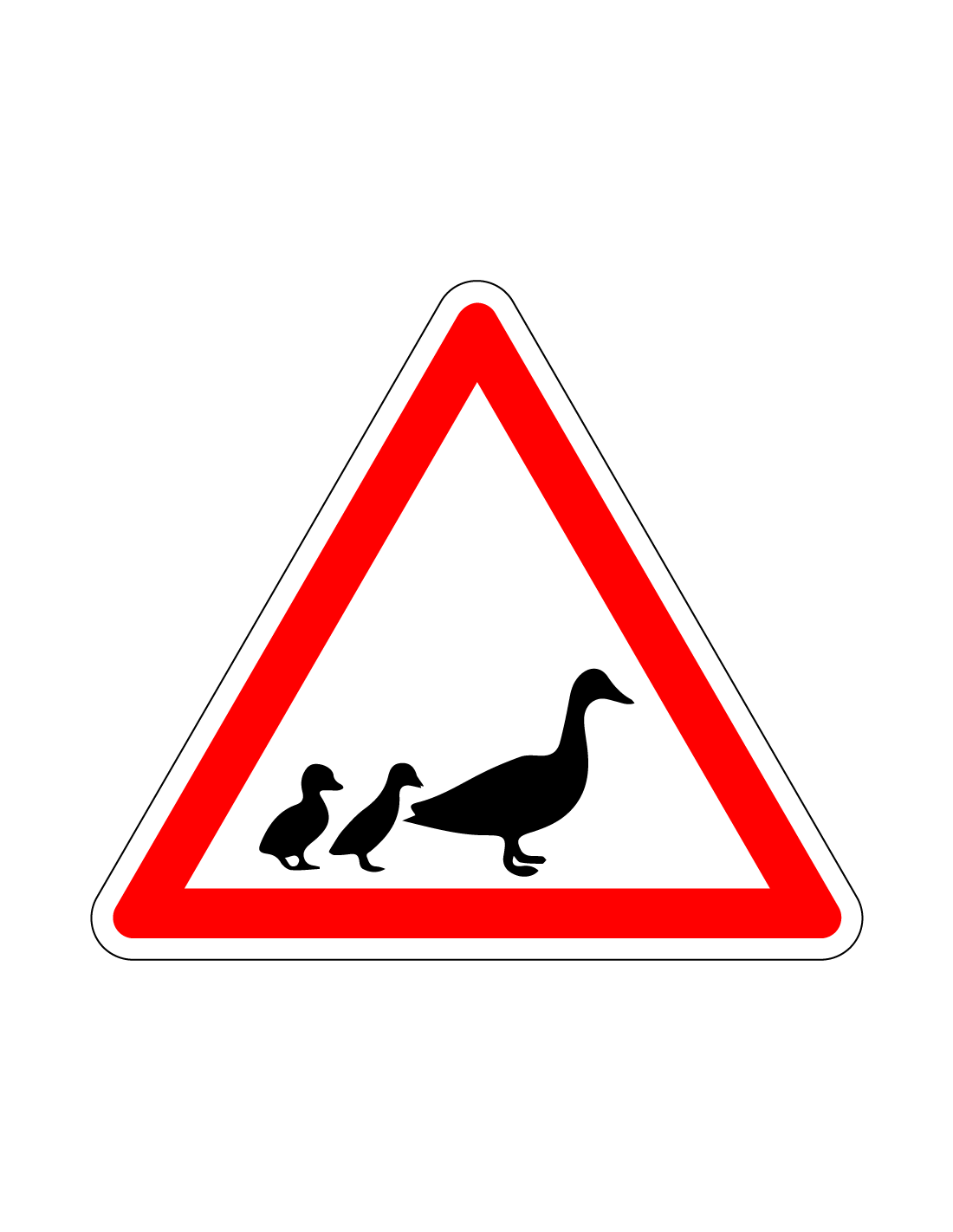 De Pas op voor eenden sticker is een driehoekige sticker met een afbeelding van eenden om aan te geven dat er hier sprake is van gevaar voor eendjes. De sticker is voorzien van een pictogram met een rode rand. De sticker is verkrijgbaar in verschillende afmetingen en is geschikt voor binnen- en beperkt buitengebruik.