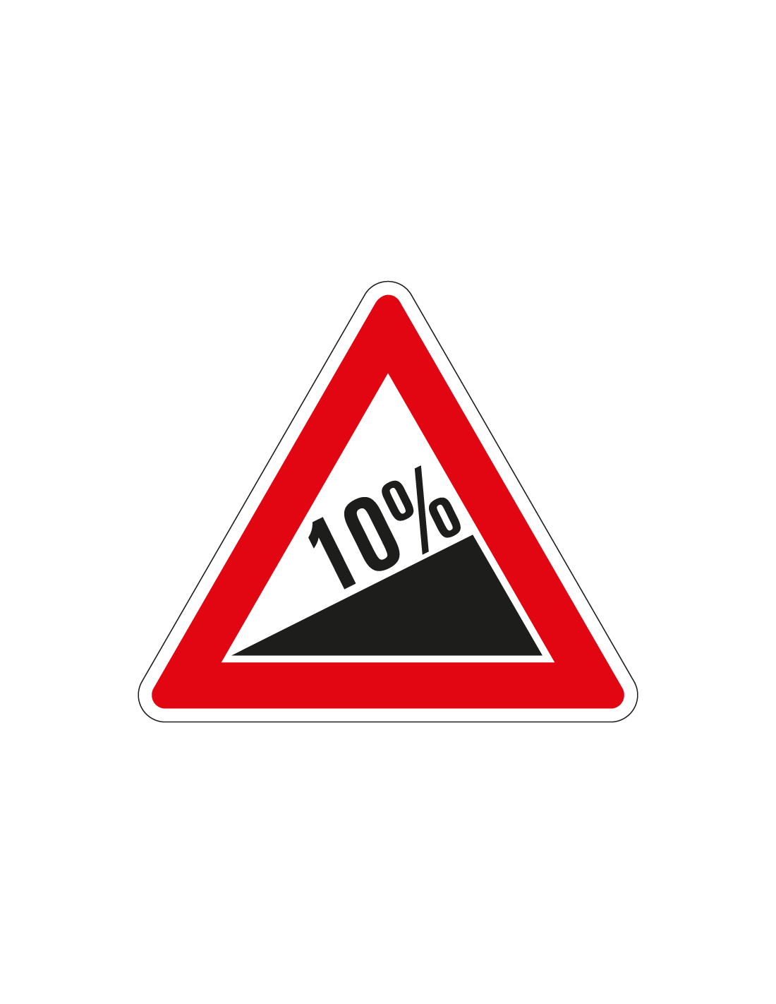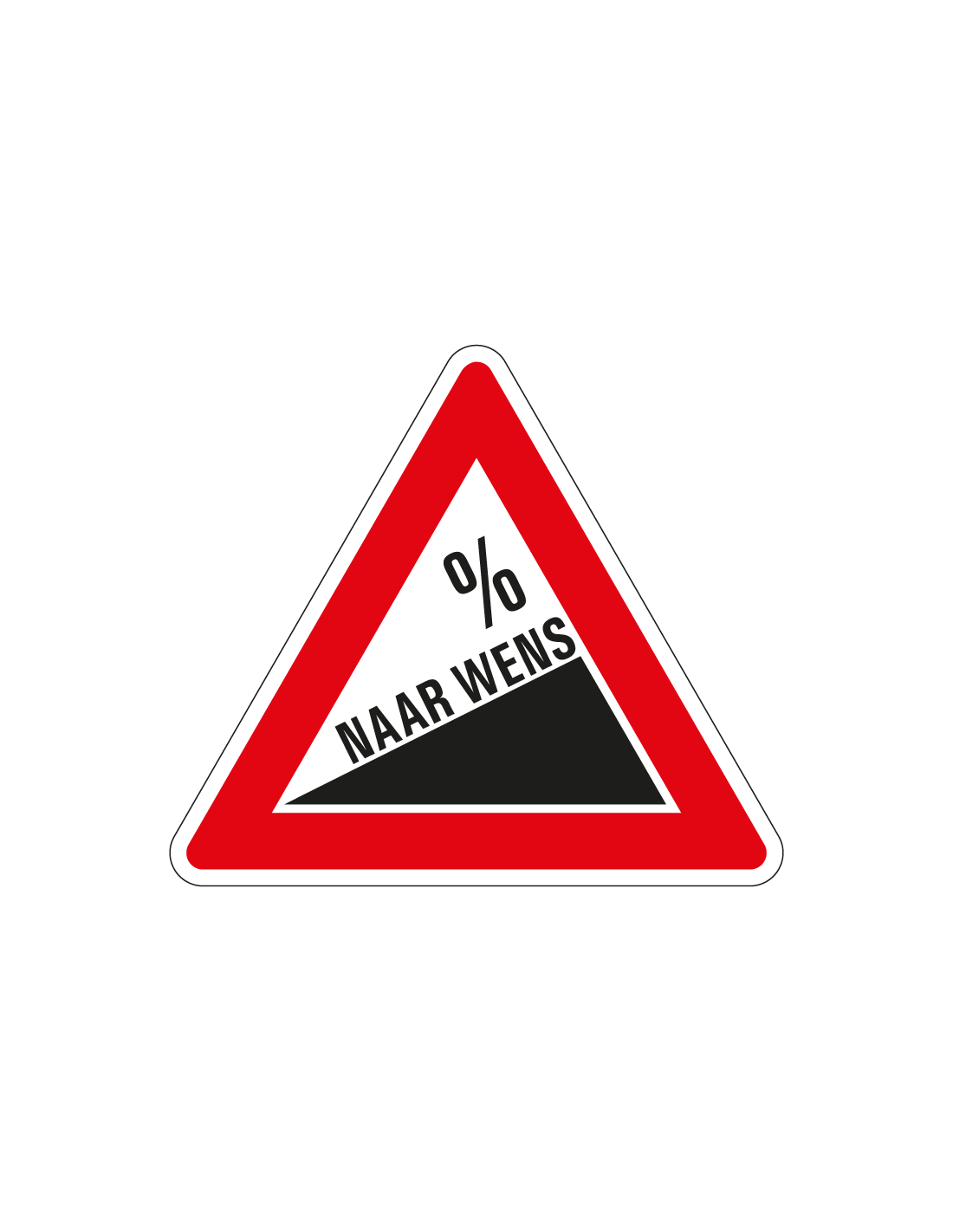 Deze steile helling sticker laat zien dat er op deze plek sprake is van een steile helling. Dit kan bijvoorbeeld het geval zijn in een bergachtig gebied. Het is belangrijk om mensen hier alert op te maken. Het percentage kan naar wens worden ingevuld met behulp van onze online live editor.