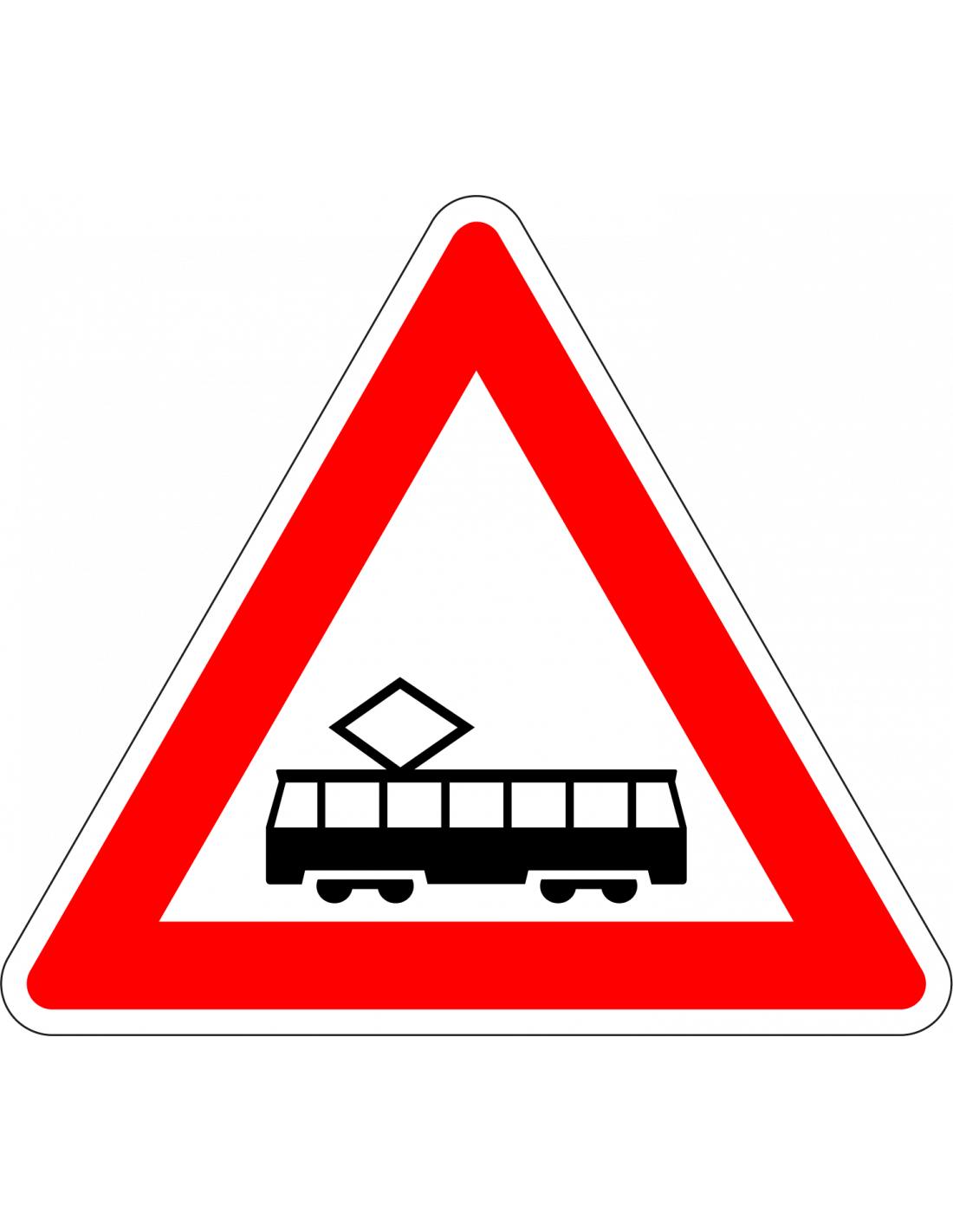 Deze tram kruising sticker geeft aan dat men hier een tram kruising nadert. Door mensen hier tijdig voor te waarschuwen, kunnen ze hun snelheid minderen.