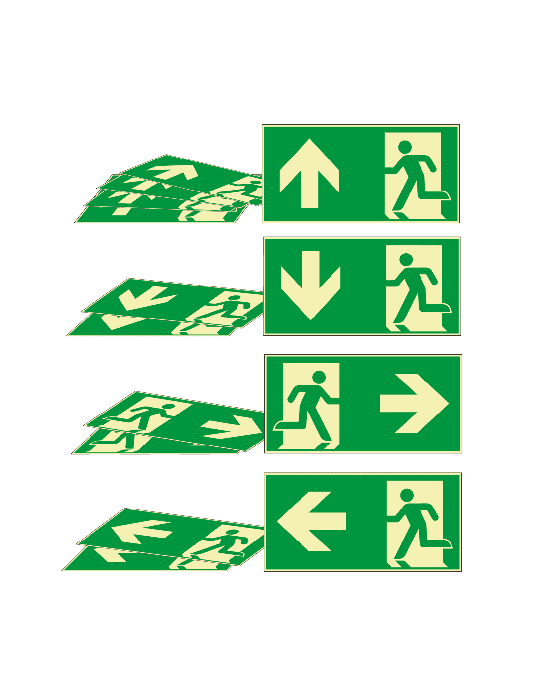 - Set van in totaal 10 nooduitgang stickers (4 x pijl omhoog, 2 x pijl omlaag, rechts en links)