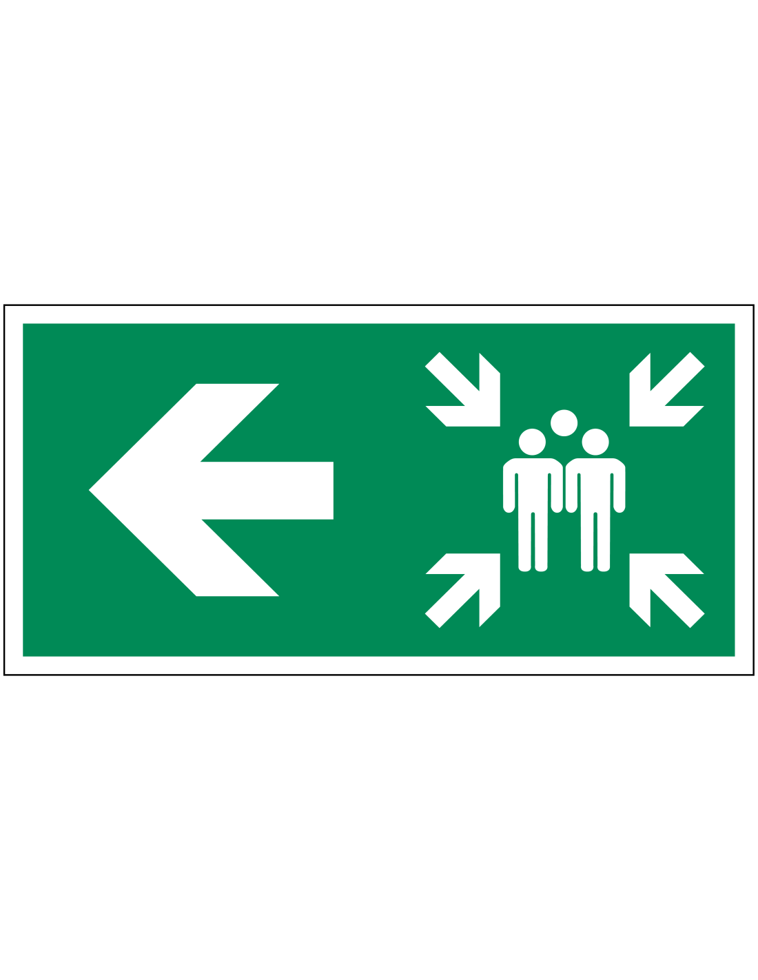 - Rechthoekige sticker met symbool verzamelplaats en pijl naar links