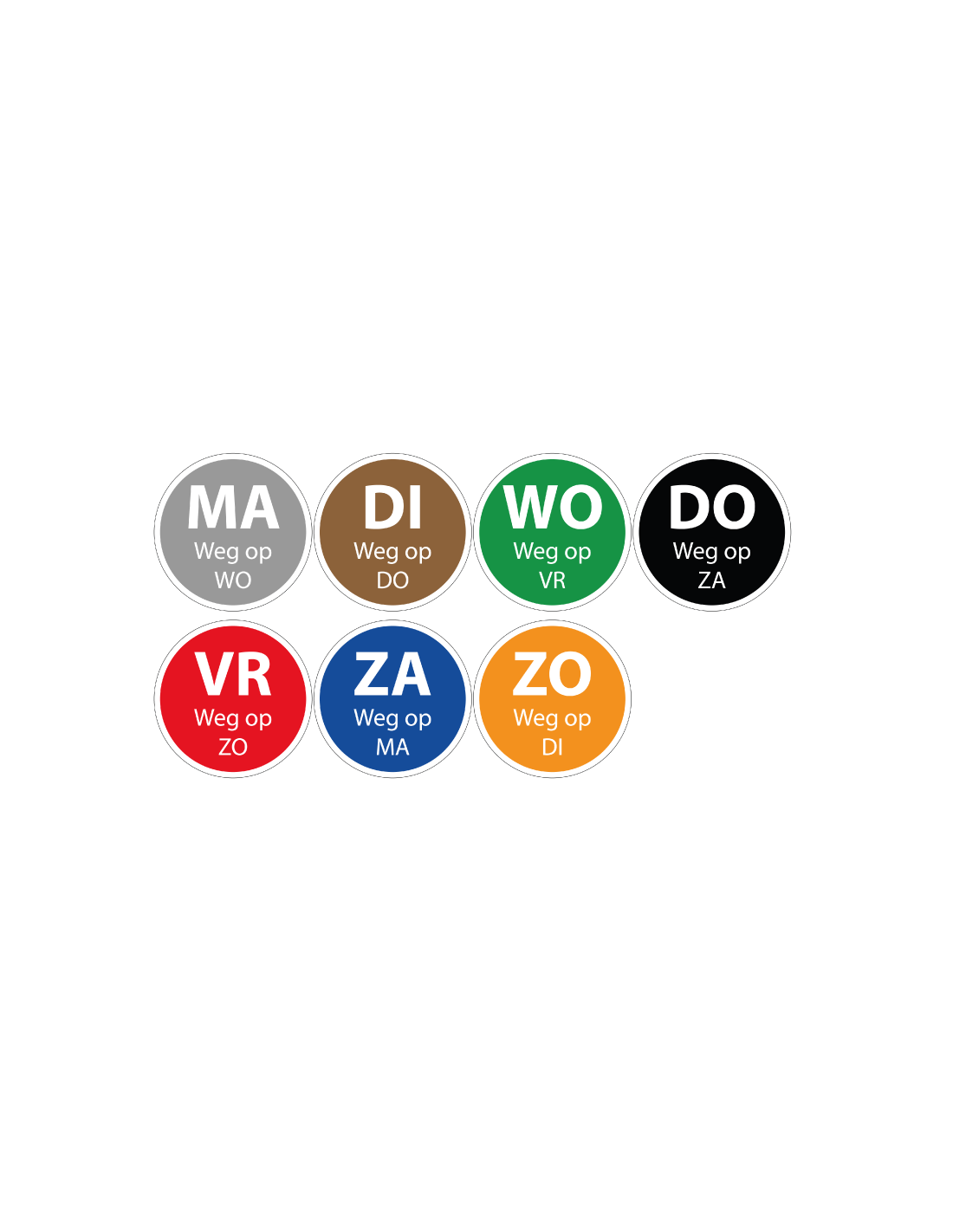De set ma t/m zo dagsticker met weg op wordt in verschillende maten geleverd: