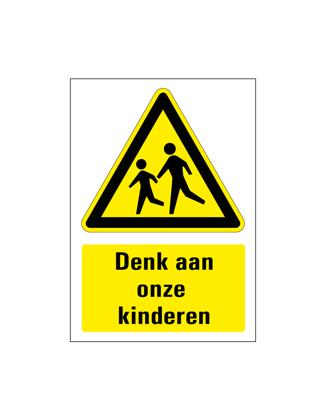 De denk aan onze kinderen sticker kun je gebruiken om mensen ervan bewust te maken dat op deze plek kinderen kunnen spelen of oversteken. Op die manier kunnen mensen hier rekening mee houden.