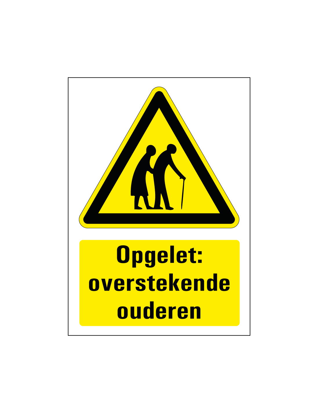 De opgelet overstekende ouderen sticker is gemaakt van zelfklevende folie en beschikbaar in verschillende afmetingen. De sticker hecht het beste op een gladde, vetvrije ondergrond. Voor de bevestiging van de sticker kun je het beste gebruikmaken van een rakel.