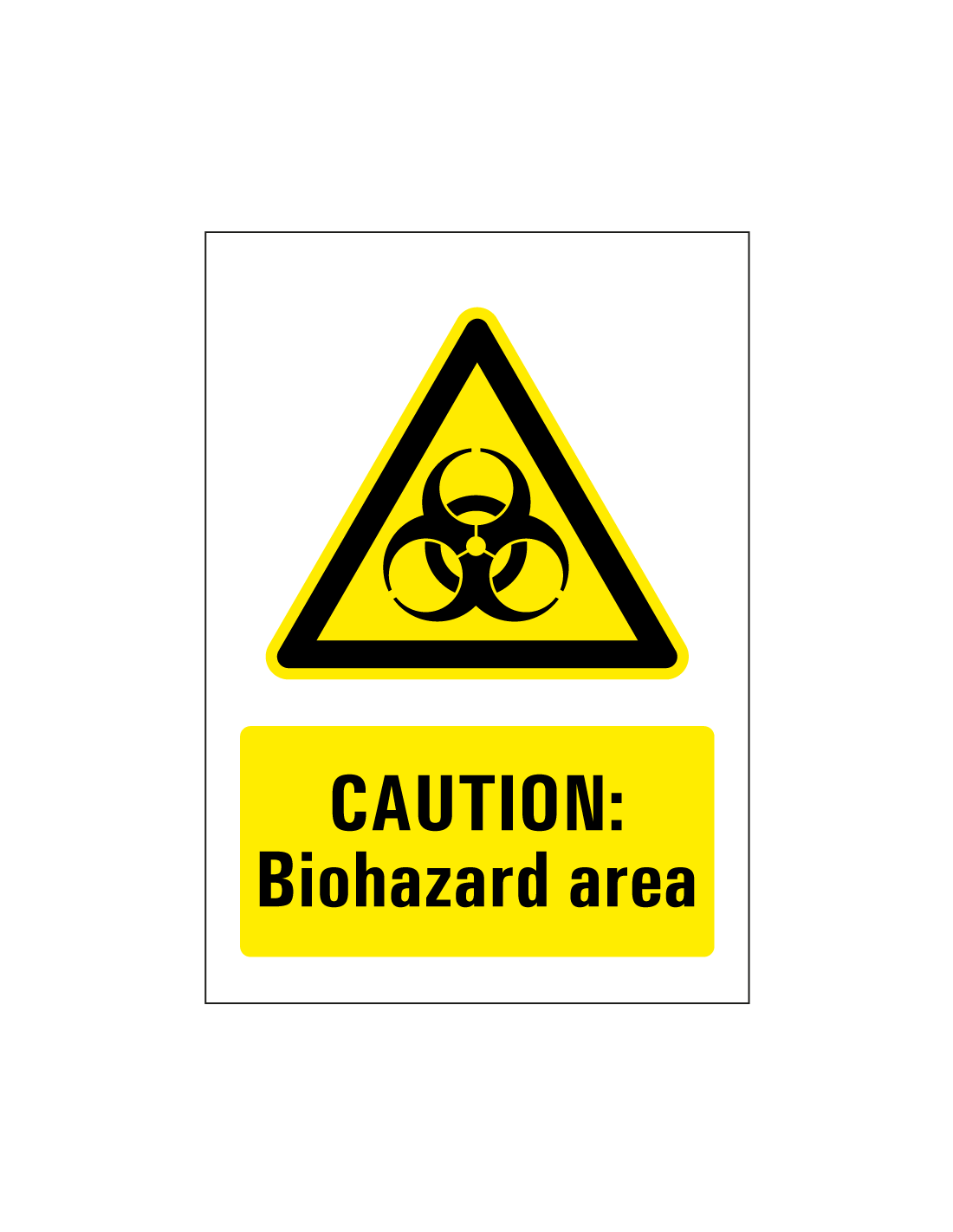 - Rechthoekige sticker met symbool biologisch gevaar en tekst caution biohazard area