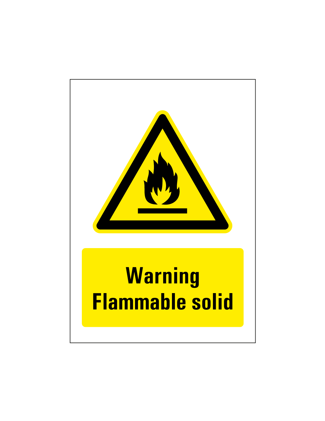 De Warning flammable solid sticker is een rechthoekige sticker met het symbool van brandgevaar om aan te geven dat er hier sprake is van ontvlambare vaste stoffen. De sticker is voorzien van de Engelse tekst "Warning flammable solid" in zwarte letters op een gele achtergrond. De sticker is verkrijgbaar in verschillende afmetingen en is geschikt voor binnen- en beperkt buitengebruik.
