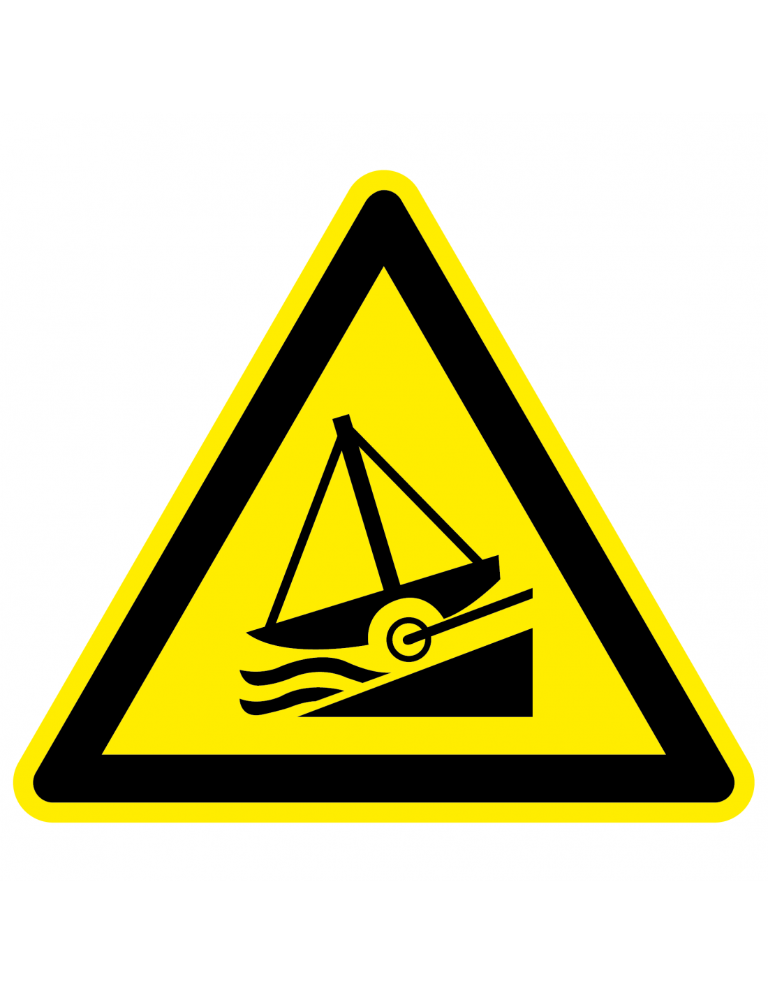 Deze sticker laat door middel van het botenhelling teken zien dat er sprake is van gevaar voor een botenhelling. Dit kan leiden tot een gevaarlijke situaties, waardoor het belangrijk is om hiervoor te waarschuwen.