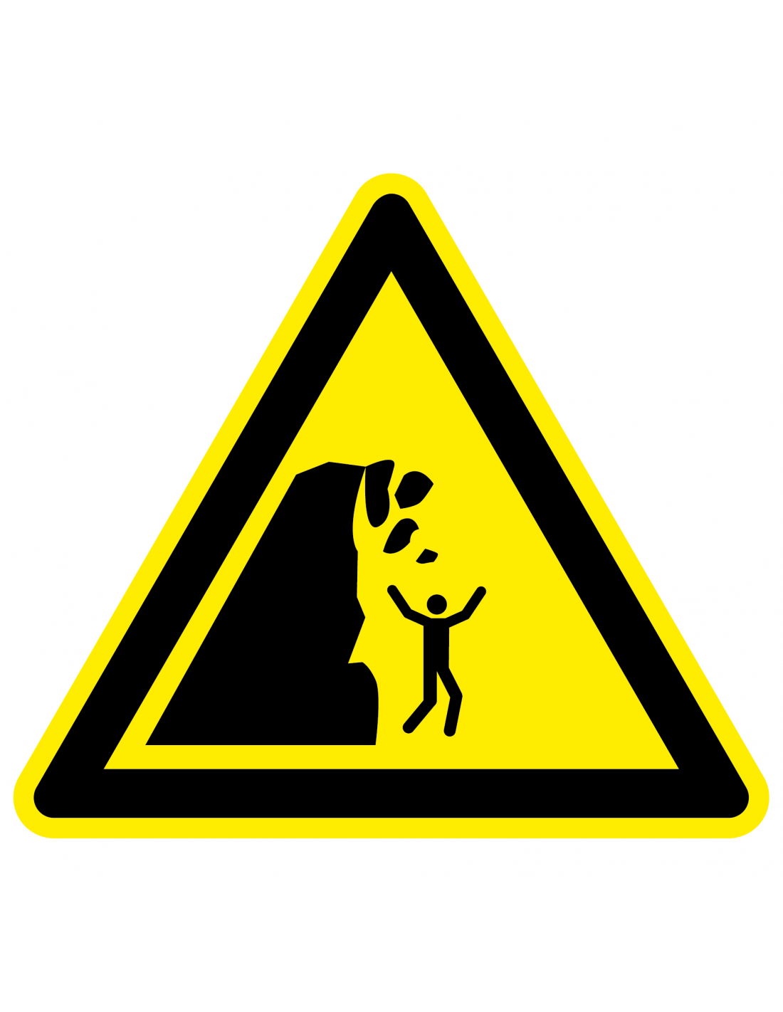 Deze sticker laat door middel van het instabiele klif teken zien dat er sprake is van gevaar voor instorting. Dit kan leiden tot een gevaarlijke situaties met dodelijke afloop, waardoor het belangrijk is om hiervoor te waarschuwen.