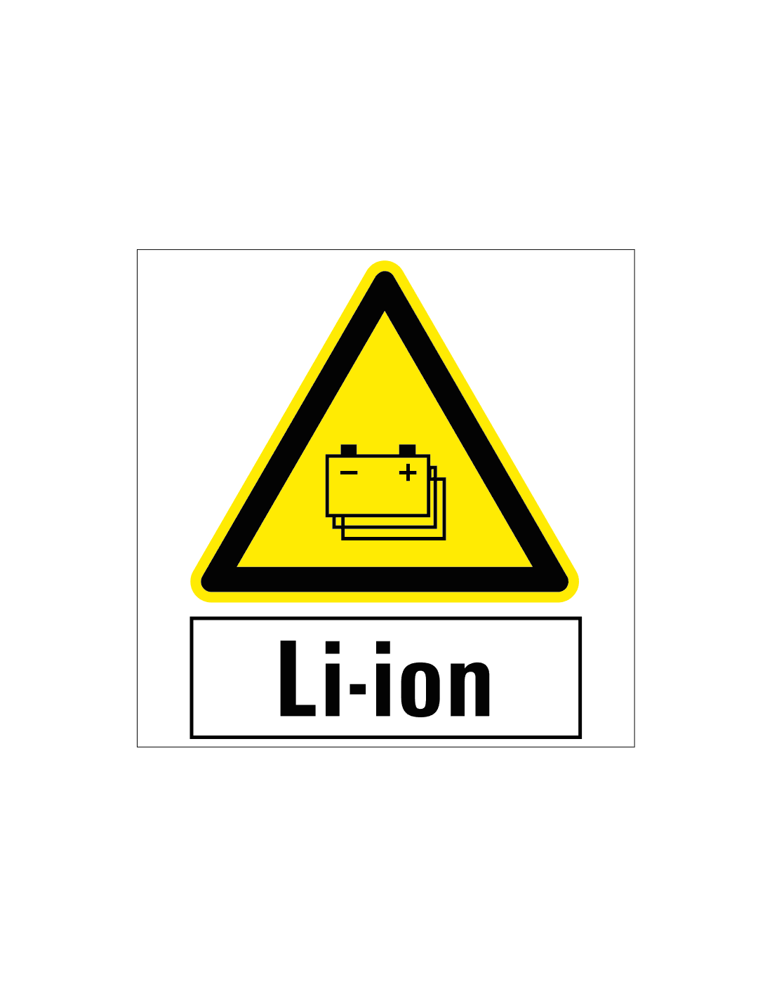 Waarschuwingssticker om aan te geven dat er gestapelde lio-ion batterijen zijn. Deze variant is een algemene oplossing die voor een breed doeleinde gebruikt kan worden.