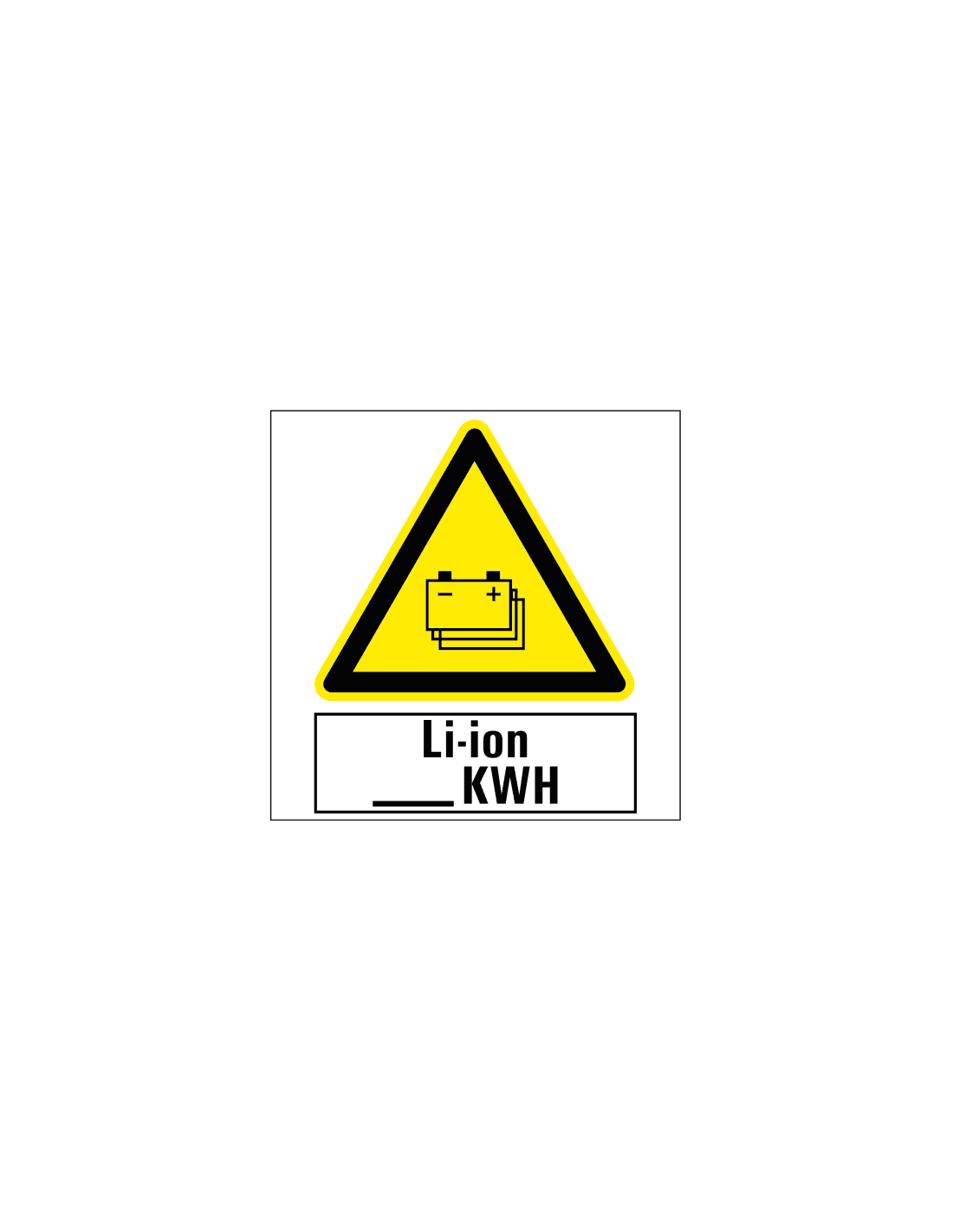 Deze waarschuwingssticker geeft aan dat er gestapelde lio-ion batterijen zijn. Bij deze variant kunt u zelf invullen om hoeveel KWH het gaat.