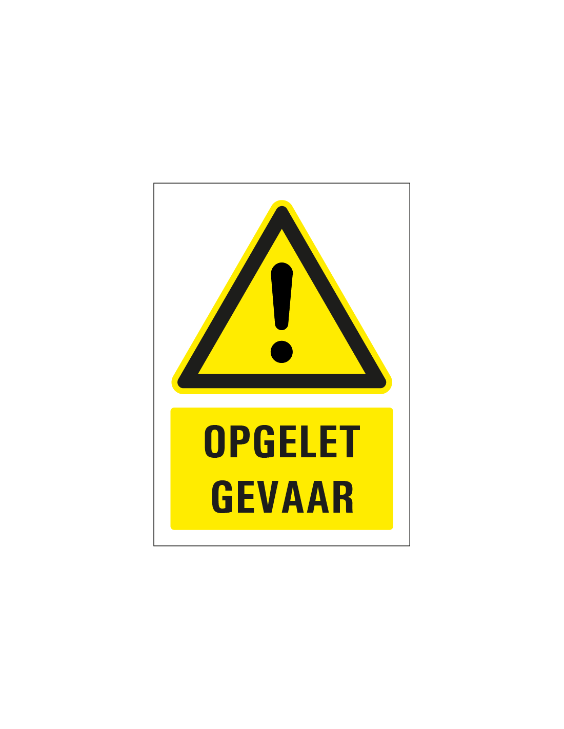 - Rechthoekige staande sticker met uitroepteken en tekst opgelet gevaar